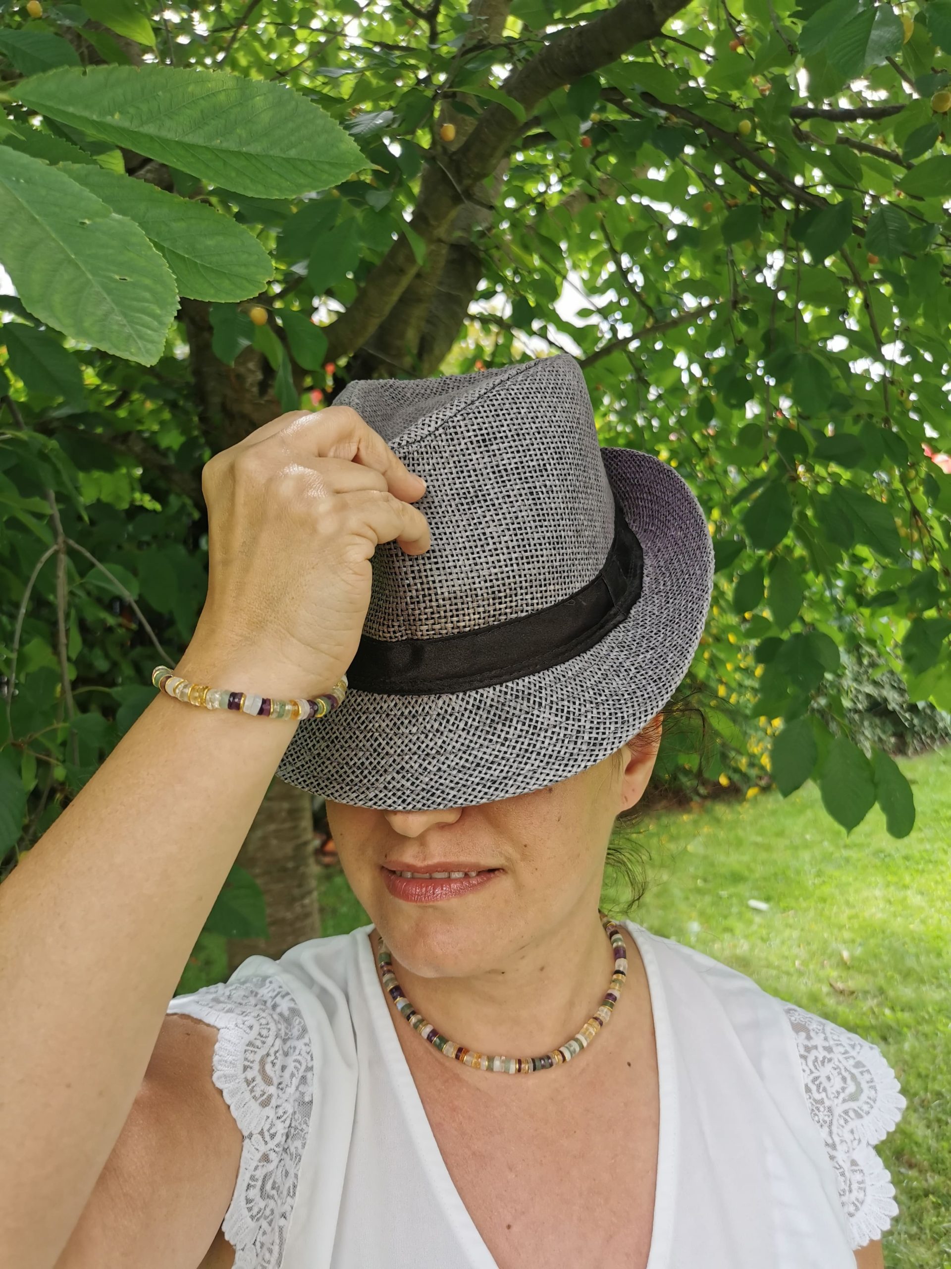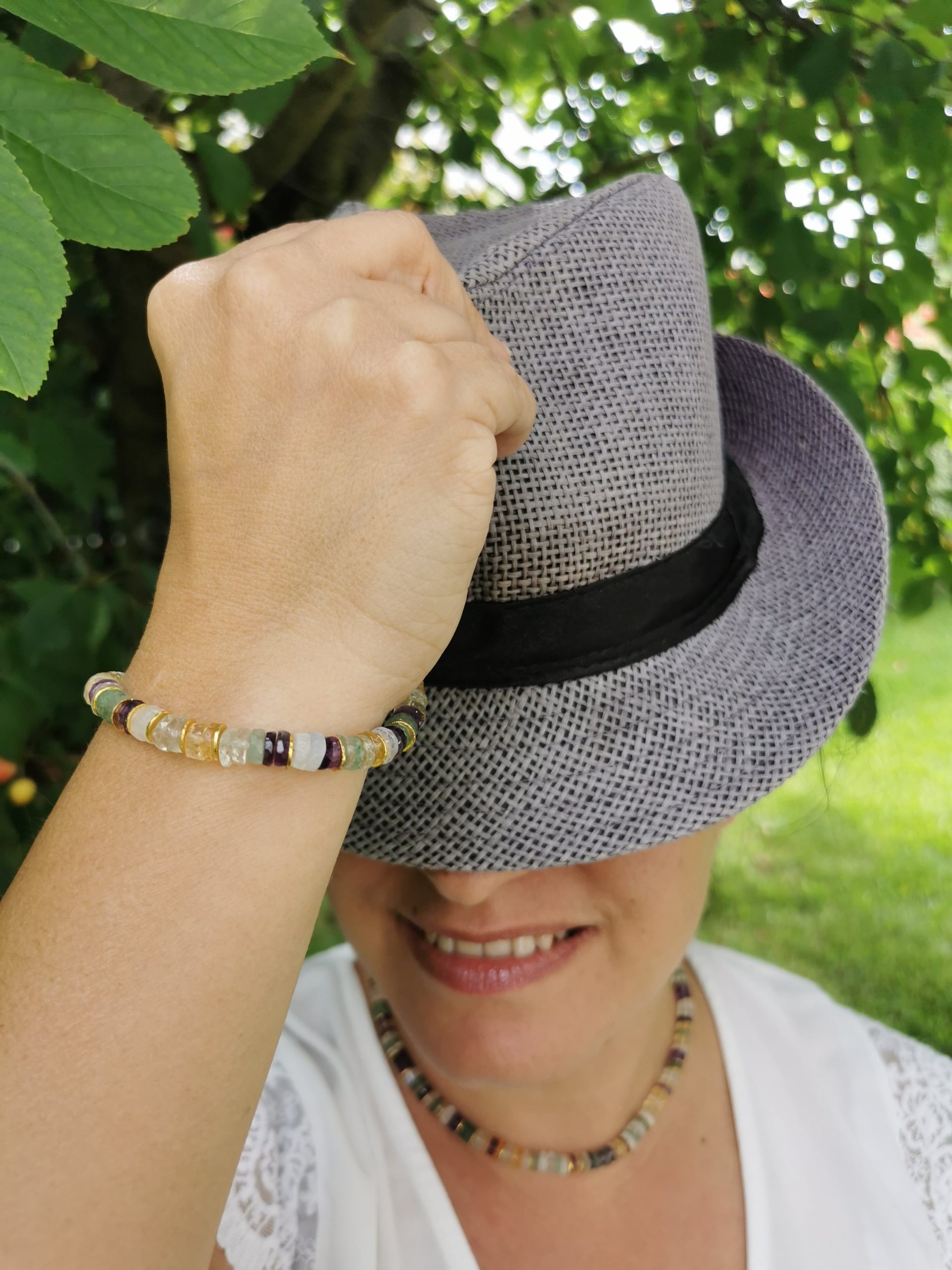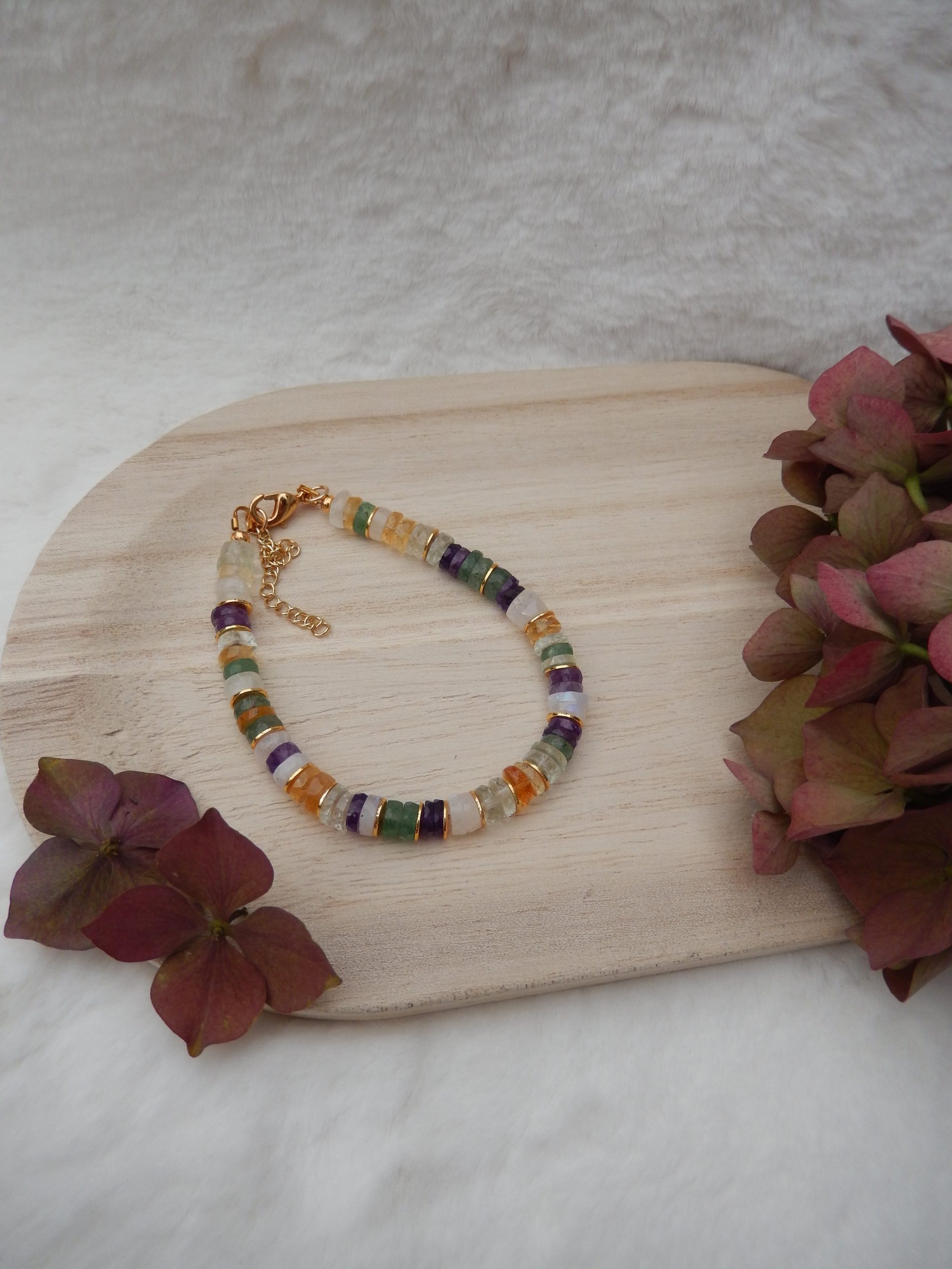• Rondelles heishi facettées en pierres naturelles : Améthyste, Citrine, Pierre de lune, Quartz vert, Améthyste verte