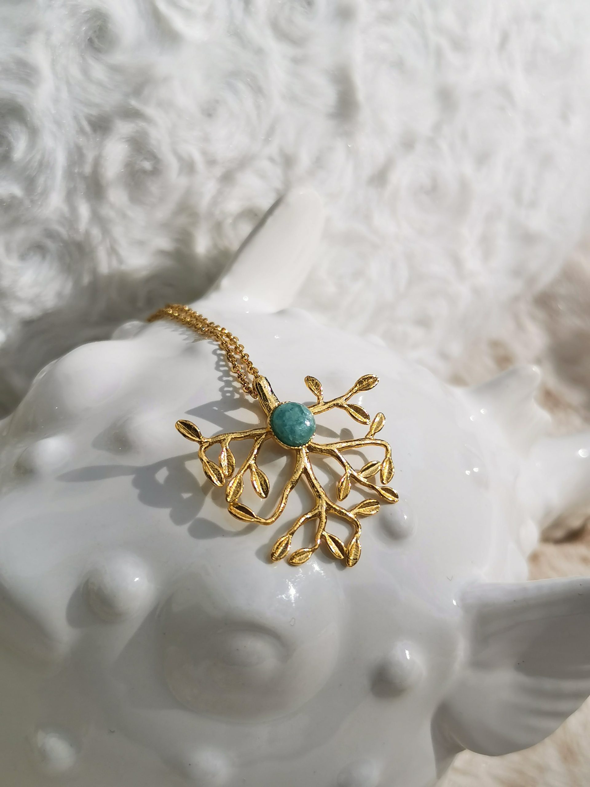 « Mintaka est né d’un rêve de lumière et d’équilibre. J’ai voulu un bijou qui relie le ciel et la terre — une étoile végétale pour rappeler que notre force réside dans notre douceur. L’amazonite y insuffle sa paix, pour accompagner chaque femme vers sa vérité intérieure. »