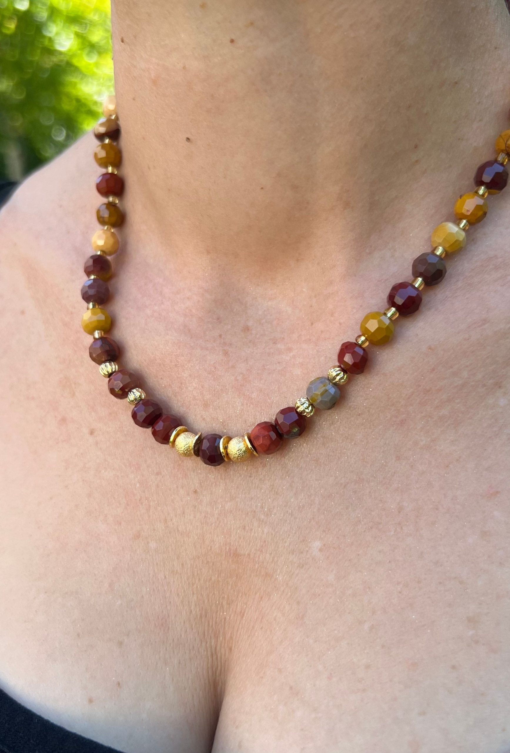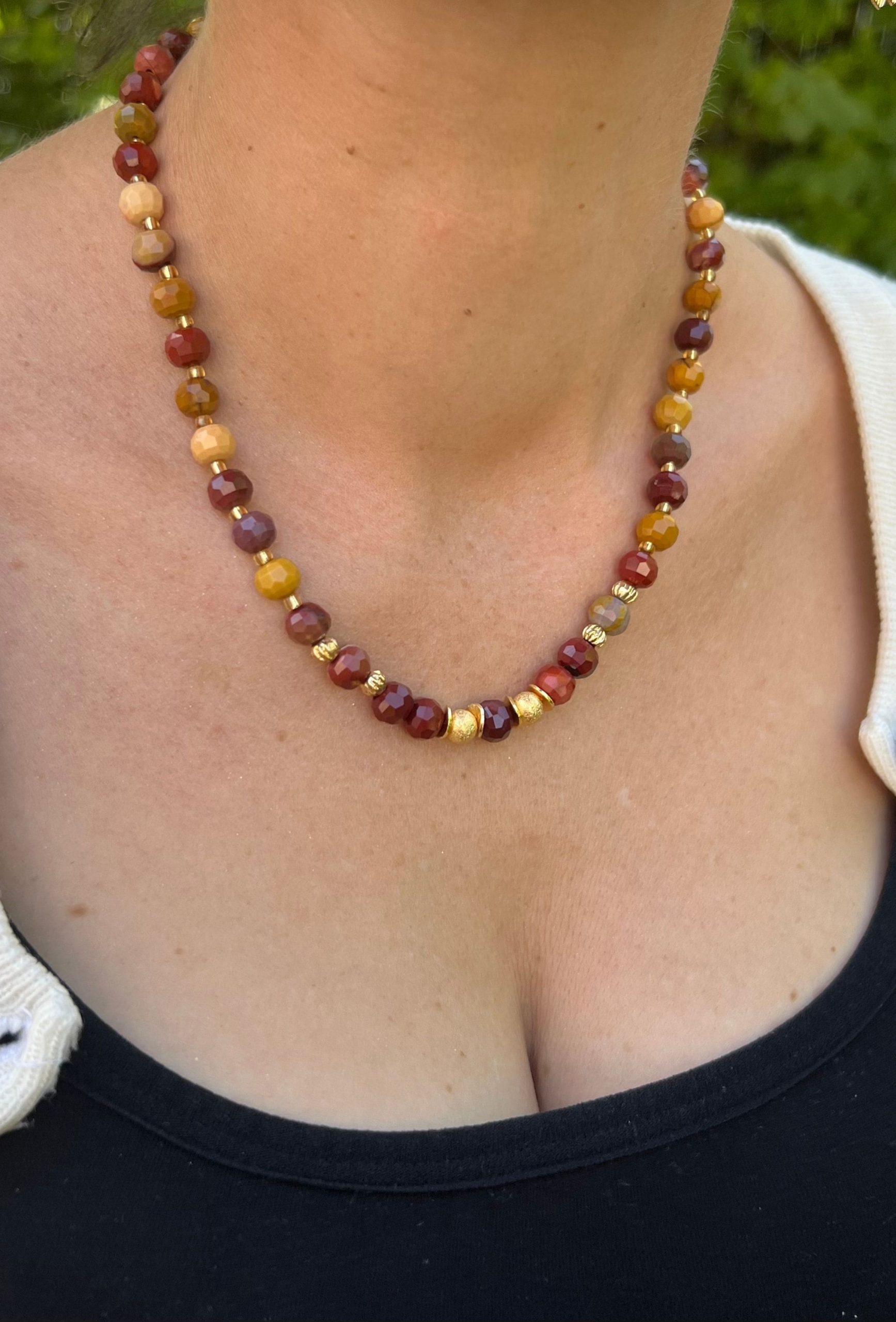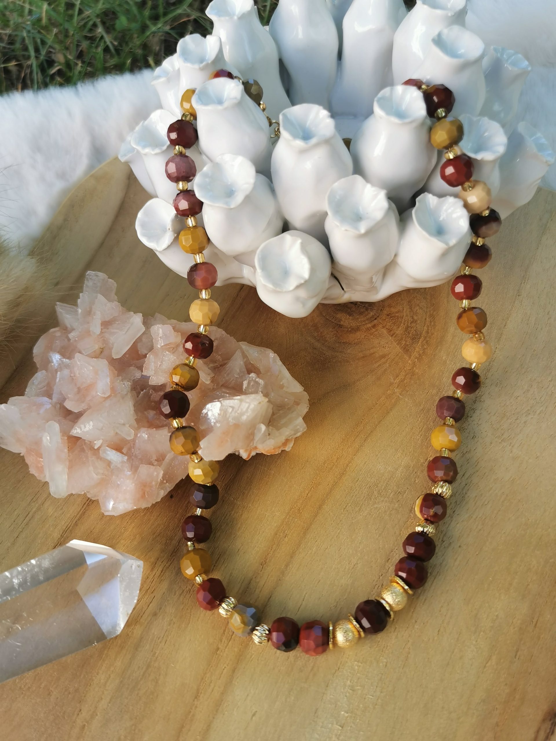 Le Jaspe mokaite : une pierre australienne aux nuances automnales fascinantes — ocre, brun, rouge profond, parfois rehaussé de touches crème.