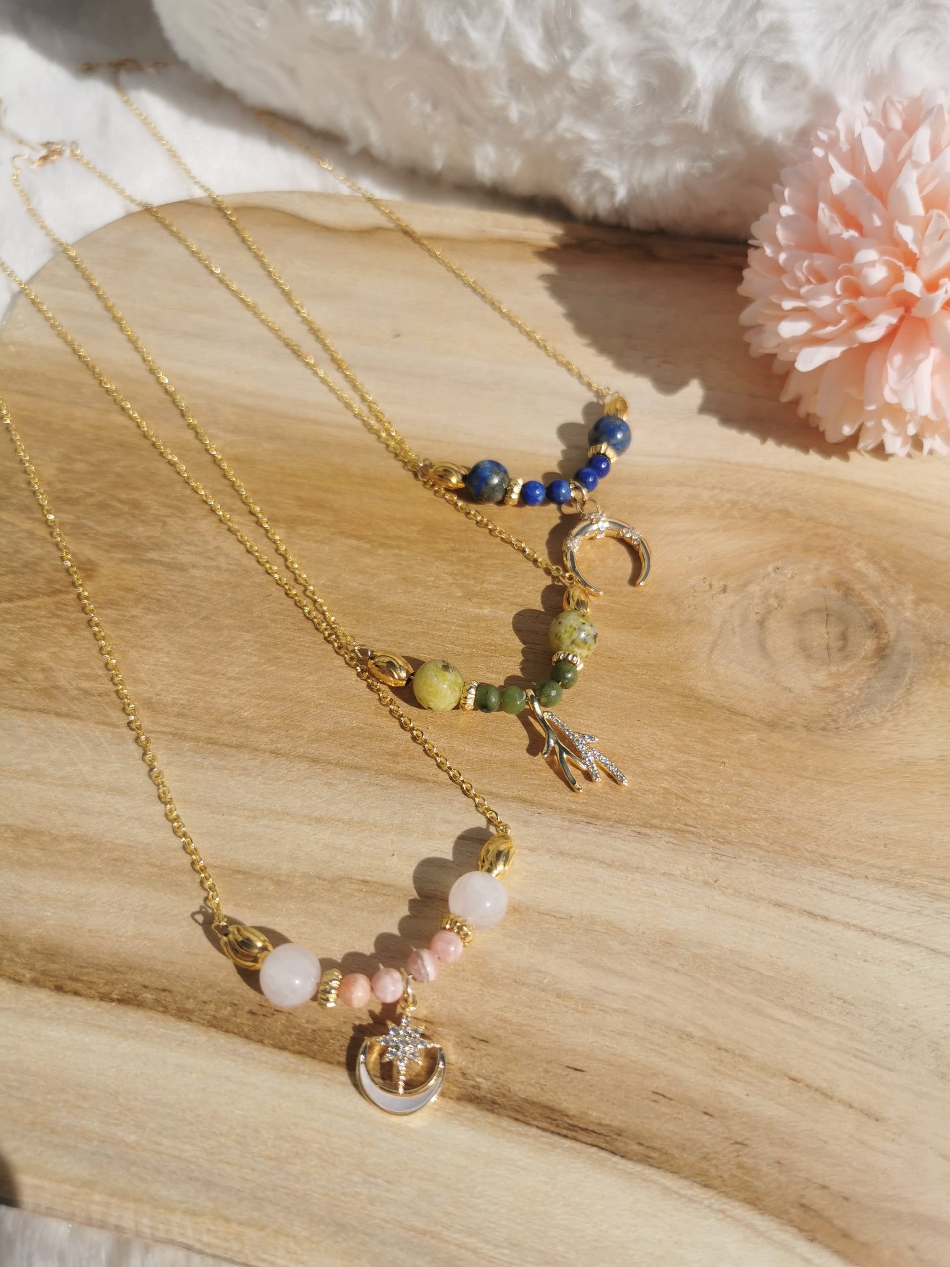Chaque pièce est façonnée à la main dans mon atelier, avec des pierres choisies pour leur beauté naturelle et leur énergie apaisante.
