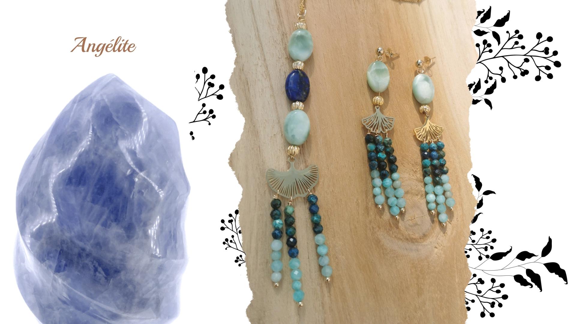 - Utilisation moderne : Aujourd’hui, l’Angélite est utilisée non seulement pour ses vertus spirituelles, mais aussi pour son esthétique douce et apaisante. Ses nuances bleu ciel et sa texture veloutée en font une pierre de choix dans la confection de bijoux et d’objets de méditation, favorisant la sérénité et le calme au quotidien.